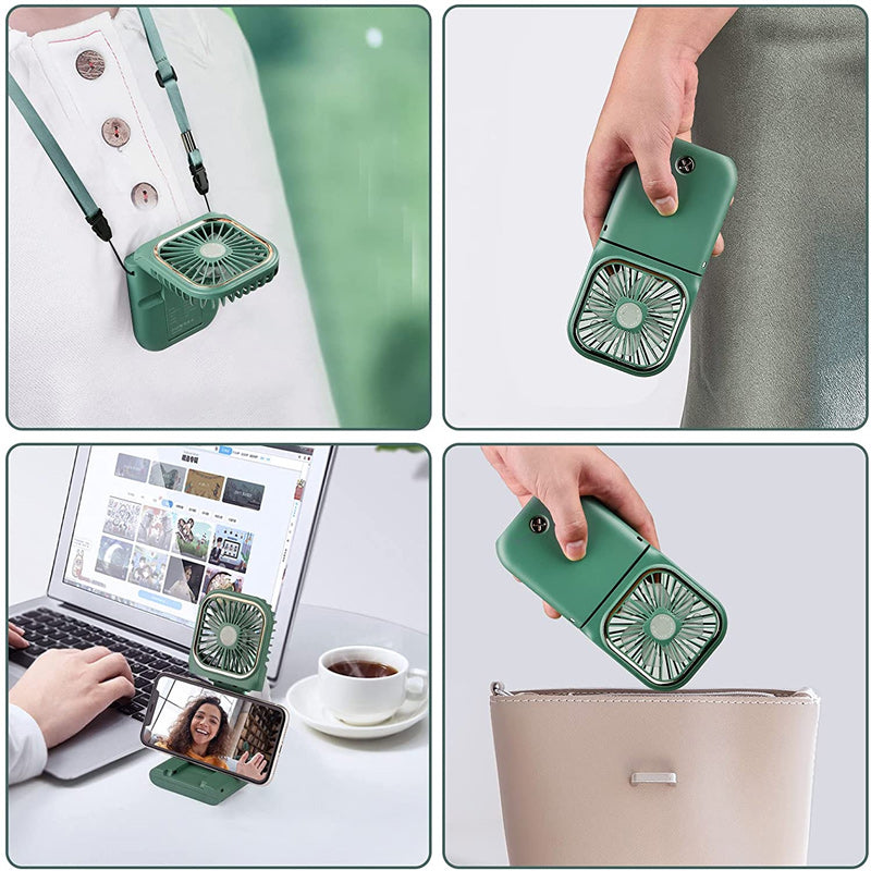 • Multifunction Hanging Neck Fan: You can hang it on your neck with the lanyard; foldable handle design allows it to be used as a desktop fan; convenient to hold in hand, or you can put it in your backpack or handbag when you go outside, especially suitable for summer travel or outdoor sports. We also designed the fan base as a cell phone holder, not only convenient but also a space saver for your desk.